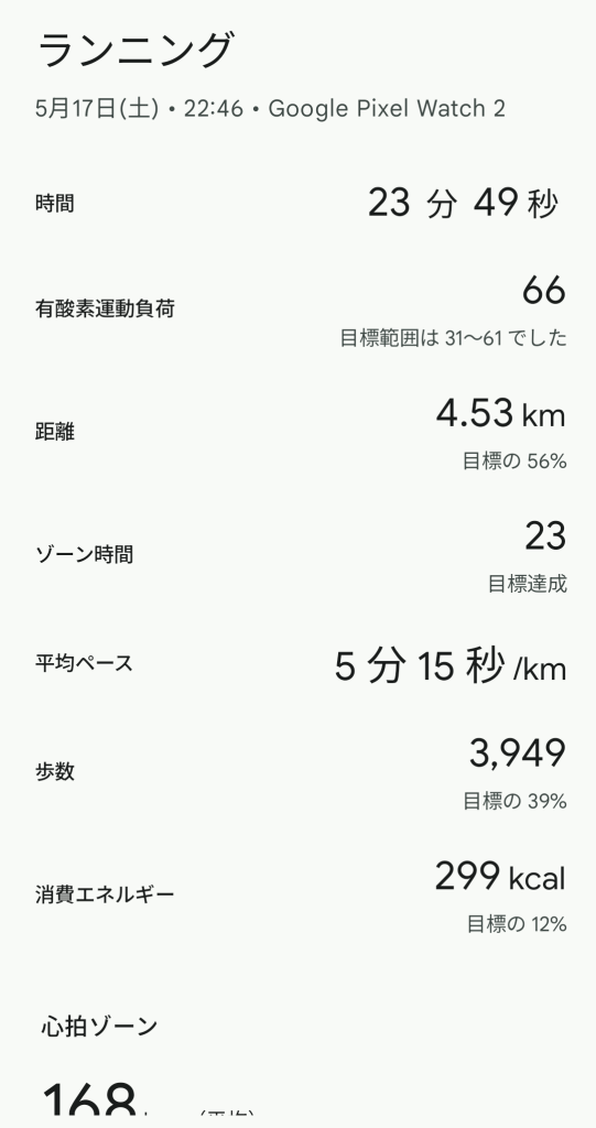 - ランニング: ウォーキングより運動強度が高く、体力向上に効果的。ペースや心拍ゾーンも記録できるため、トレーニングの質を高められます。